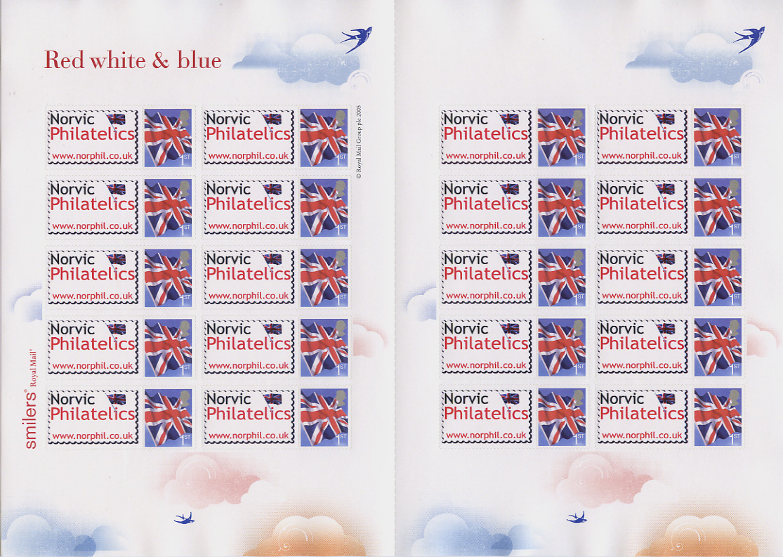 The personalised Smilers sheets contain 20 copies of one design, and are self-adhesive. They are printed by Walsall's French subsidiary, Cartor, and are collectably quite different. Smilers stamps are not separately listed in the Stanley Gibbons catalogue, although the sheets are listed. But other catalogues and some pre-printed albums do recognise these as different stamps. As there is no generic sheet the only way to get these Cartor stamps is from Personalised Smilers. We have obtained personalised sheets for first day covers and for customers who will want these stamps for their collections.