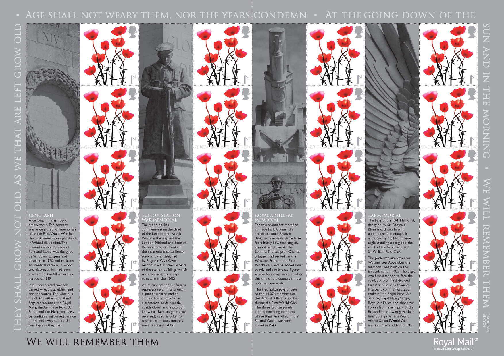 Royal Mail 'Lest We Forget' miniature sheet 9 November 2006.